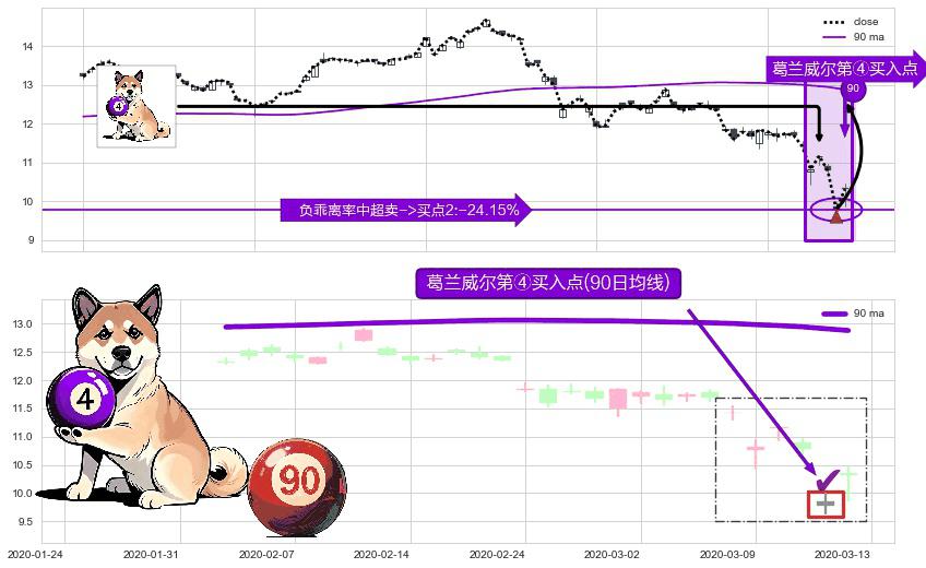 ⚀ 2020-03-12-日显现 葛兰威尔均线 90日均线 第④买入点 下降趋势均值回复的短线反弹信号,后市看涨,买进信号