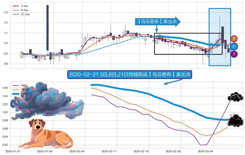 形态多维评估: ⚀ 2020-02-05日-2020-03-09日显现 3日-8日-21日均线 【乌云密布】卖出点 看空信号,后市看跌,卖出