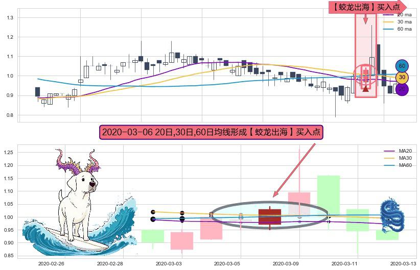 形态多维评估: ⚀ 2020-03-06日显现 20日-30日-60日均线 【蛟龙出海】买入点 看多信号,后市看涨,买入