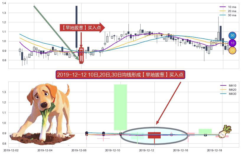 形态多维评估: ⚀ 2019-12-12日显现 10日-20日-30日均线 【旱地拔葱】买入点 看多信号,后市看涨,买入