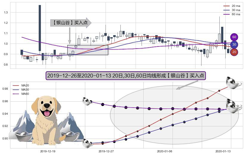 形态多维评估: ⚀ 2019-12-27-日至2020-01-13-日显现 20日-30日-60日均线 【银山谷】买入点 看多信号,后市看涨,买入
