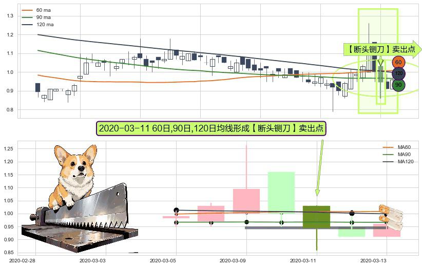 形态多维评估: ⚀ 2020-03-11日显现 60日-90日-120日均线 【断头铡刀】卖出点 看空信号,后市看跌,卖出