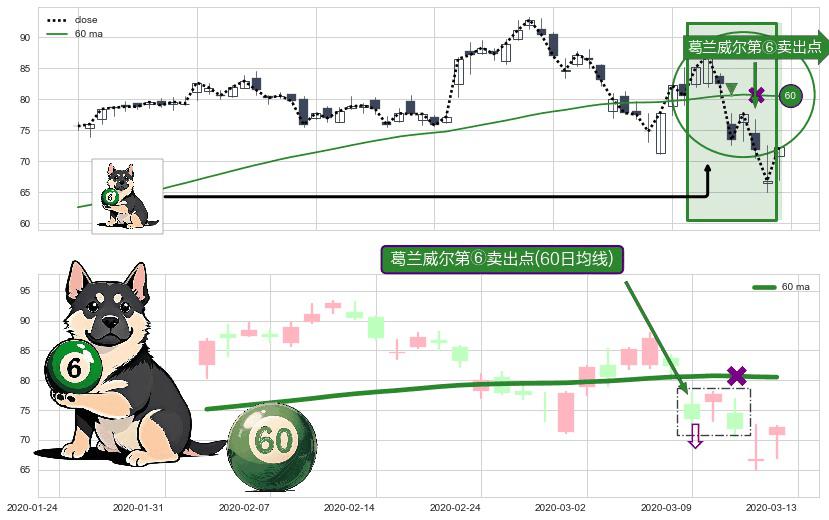 形态多维评估: ⚀ 2020-03-09-日显现 葛兰威尔均线 60日均线 第⑥卖出点 走势反转见顶信号,后市看跌,卖出信号