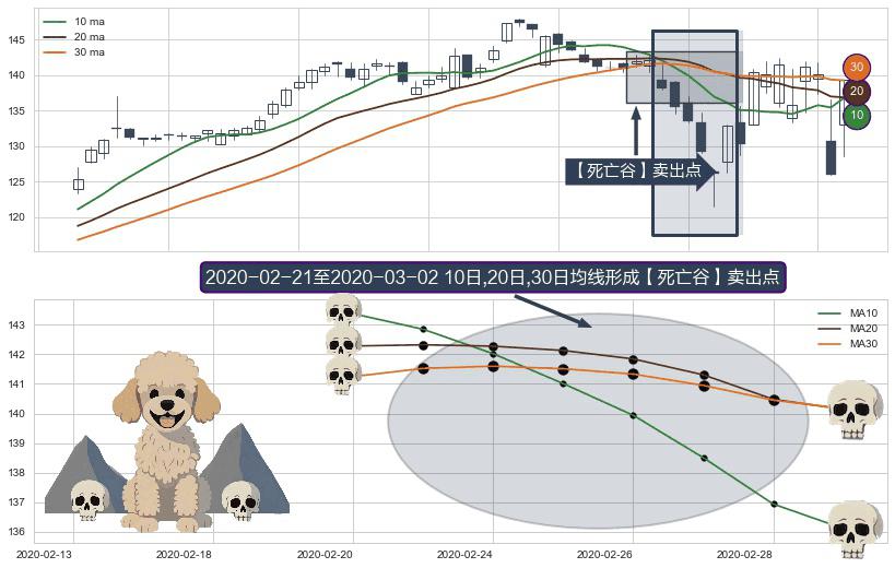 形态多维评估: ⚀ 2020-02-24-日至2020-03-02-日显现 10日-20日-30日均线 【死亡谷】卖出点 看空信号,后市看跌,卖出