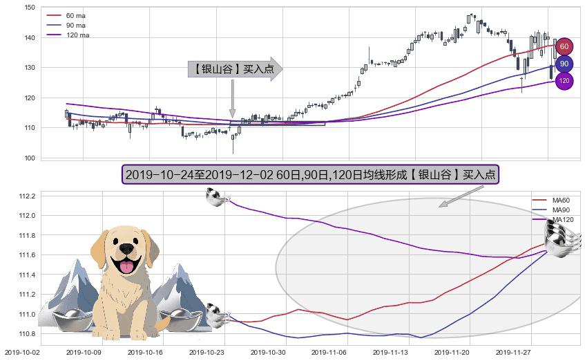 形态多维评估: ⚀ 2019-10-25-日至2019-12-02-日显现 60日-90日-120日均线 【银山谷】买入点 看多信号,后市看涨,买入