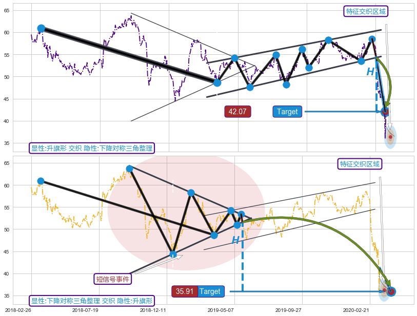 ➢ 下降【对称】三角形整理综合量化分数: 44.59 【偏空】