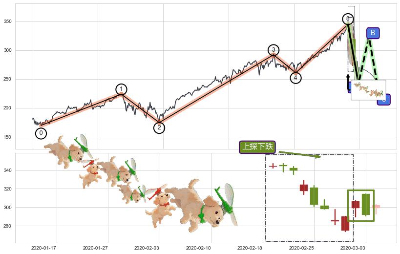 ➢ 低点影线(2020-02-05: 324.17 )→回踩→第二根k线低点(2020-02-04: 326.29 )