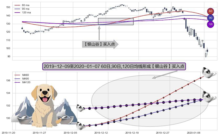 形态多维评估: ⚀ 2019-12-10-日至2020-01-07-日显现 60日-90日-120日均线 【银山谷】买入点 看多信号,后市看涨,买入