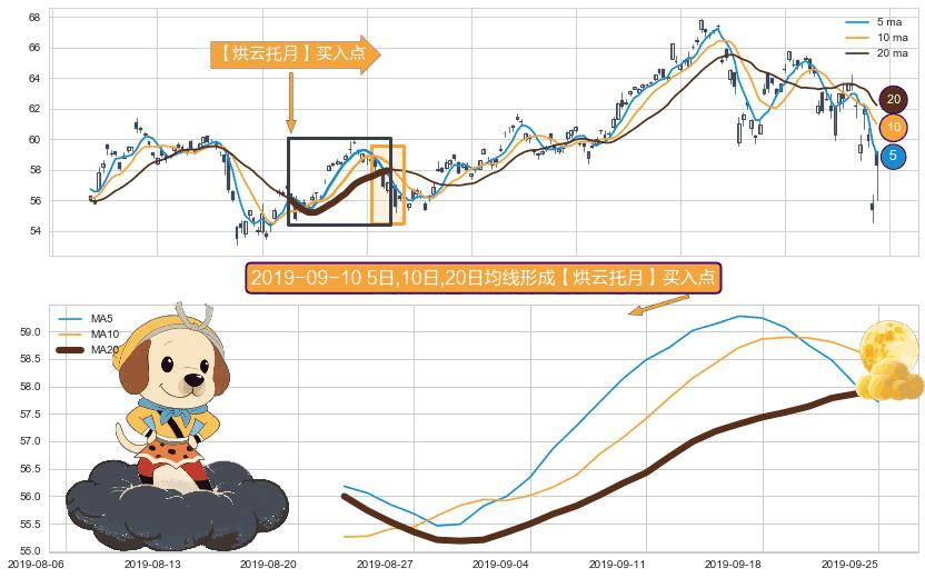 ⚀ 2019-08-22日-2019-09-25日显现 5日-10日-20日均线 【烘云托月】买入点 看多信号,后市看涨,买入