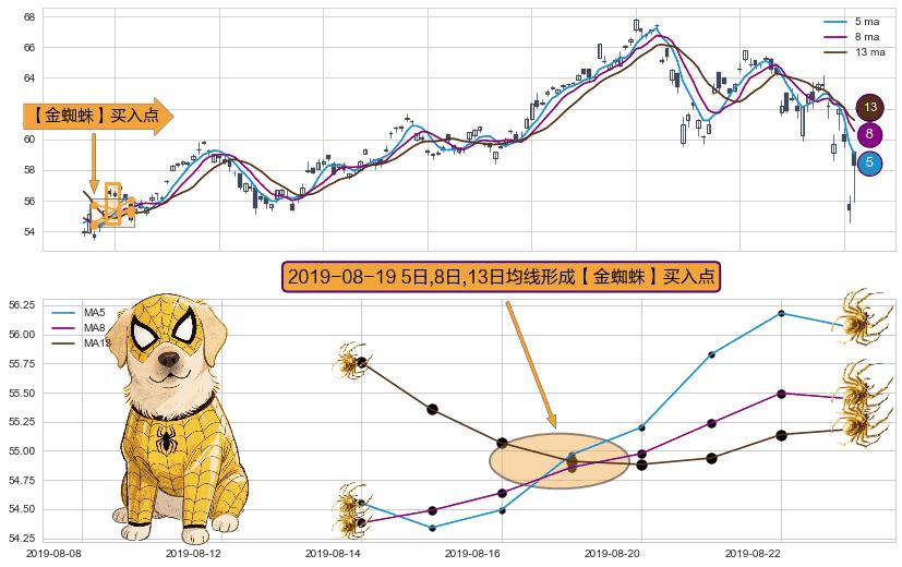 ⚀ 2019-08-19日显现 5日-8日-13日均线 【金蜘蛛】买入点 看多信号,后市看涨,买入