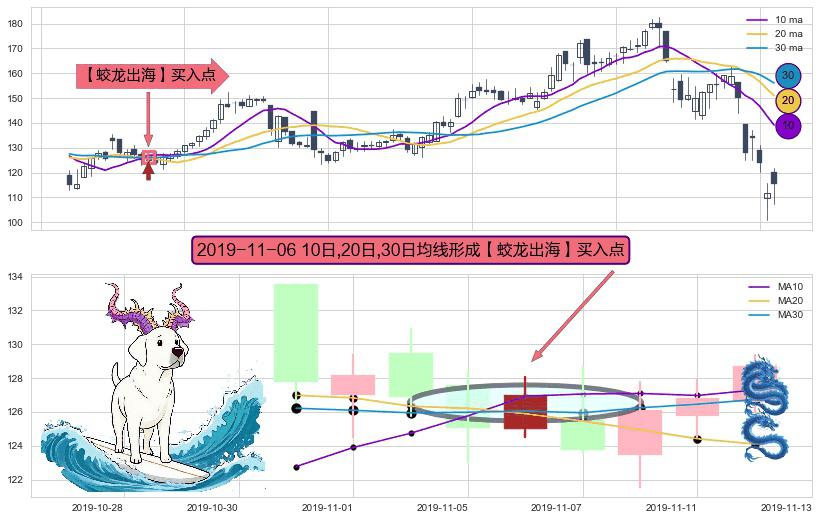 ⚀ 2019-11-06日显现 10日-20日-30日均线 【蛟龙出海】买入点 看多信号,后市看涨,买入