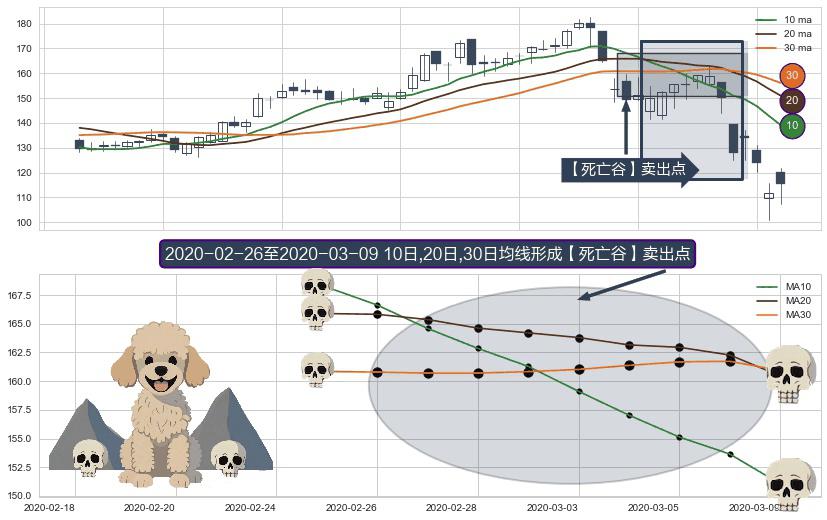 ⚀ 2020-02-27-日至2020-03-09-日显现 10日-20日-30日均线 【死亡谷】卖出点 看空信号,后市看跌,卖出
