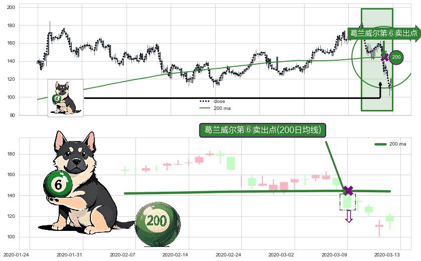 ⚀ 2020-03-09-日显现 葛兰威尔均线 200日均线 第⑥卖出点 走势反转见顶信号,后市看跌,卖出信号