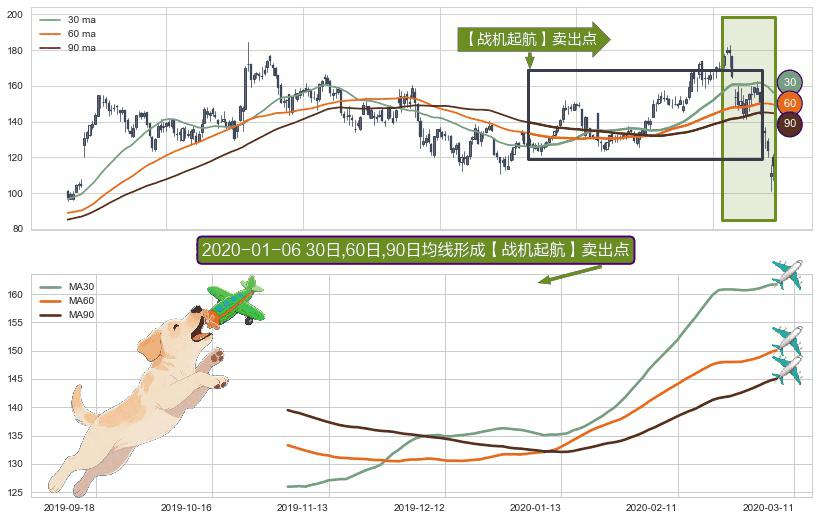 ⚀ 2019-11-04日-2020-03-06日显现 30日-60日-90日均线 【战机起航】卖出点 看空信号,后市看跌,卖出