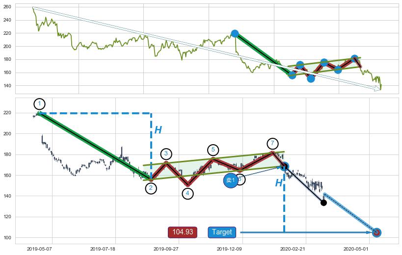 ➢ 【已确认突破】最后价格:141.68与最小【整理】第一目标价格→(2020-05-11: 104.93 )相较: 下跌空间【中等】