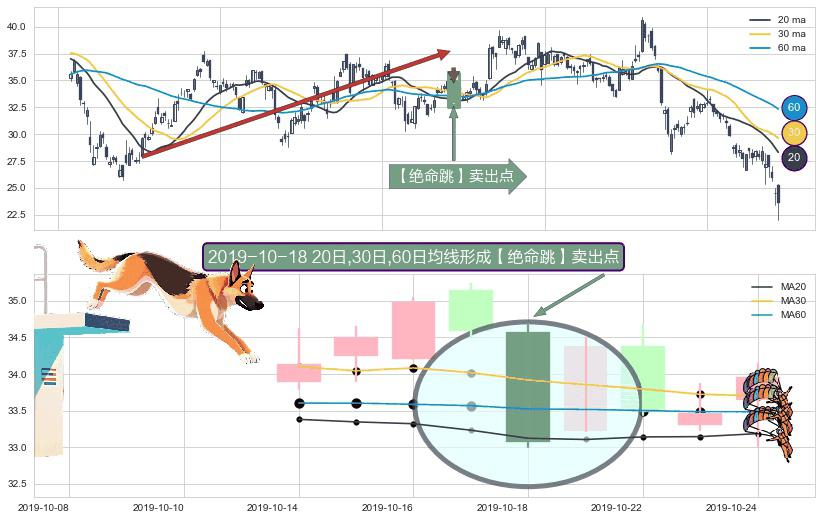 形态多维评估: ⚀ 2019-10-18日显现 20日-30日-60日均线 【绝命跳】卖出点 看空信号,后市看跌,卖出