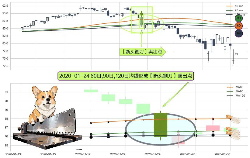 形态多维评估: ⚀ 2020-01-24日显现 60日-90日-120日均线 【断头铡刀】卖出点 看空信号,后市看跌,卖出