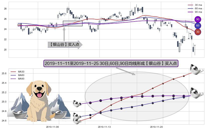 形态多维评估: ⚀ 2019-11-12-日至2019-11-25-日显现 30日-60日-90日均线 【银山谷】买入点 看多信号,后市看涨,买入
