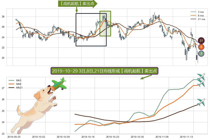 形态多维评估: ⚀ 2019-10-10日-2019-11-14日显现 3日-8日-21日均线 【战机起航】卖出点 看空信号,后市看跌,卖出
