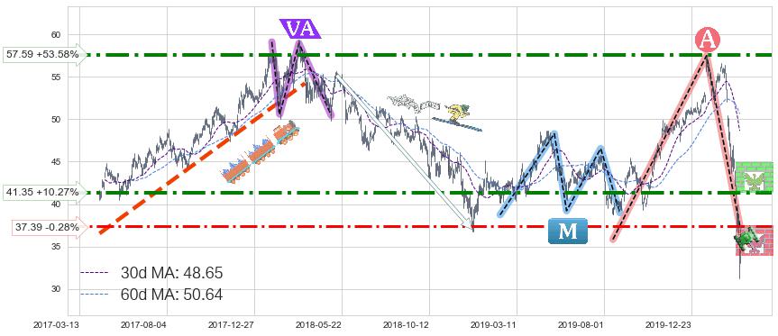 ♘ 支撑价格位37.39,可信任强度63.57%,距离最后交易2020-03-13形成的收盘价格37.50相差 -0.28%