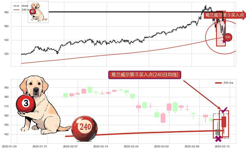 ⚀ 2020-03-13-日显现 葛兰威尔均线 240日均线 第③买入点 上升趋势的中继信号,后市看涨,买进信号