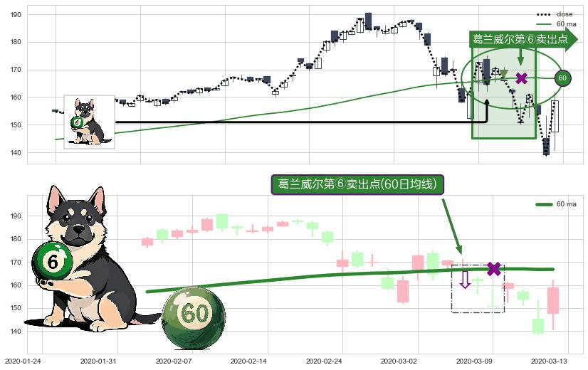 ⚀ 2020-03-05-日显现 葛兰威尔均线 60日均线 第⑥卖出点 走势反转见顶信号,后市看跌,卖出信号
