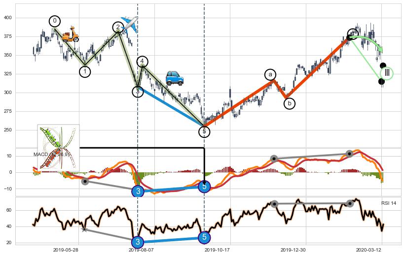 ➣ a,c调整浪MACD, RSI, KDJ走势都【未出现】背离,abc走势延续, 5浪反转概率增强