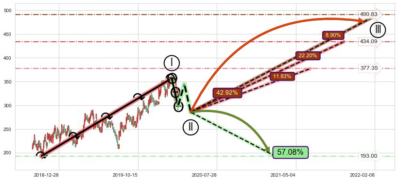 ➣ AI预测: 假定反转启动后, 第❶目标位置(2021-05-25, 317.96)