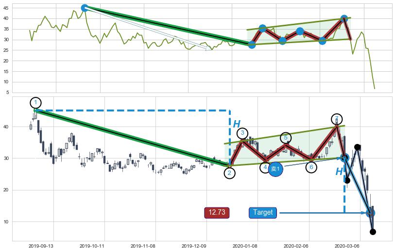 ➣ 最小中继整理跌幅→𝐇: 17.48 (𝐇旗杆的长度:旗杆起点→顶点)