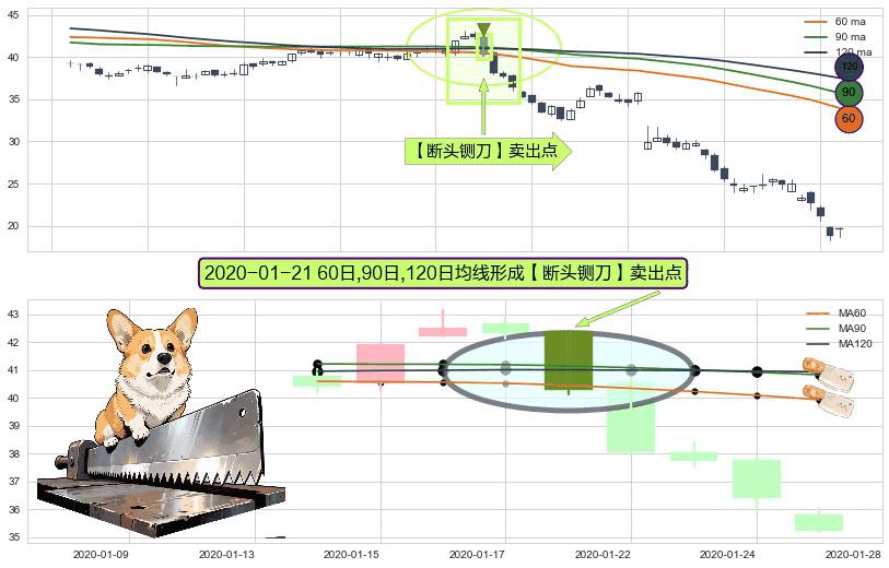 形态多维评估: ⚀ 2020-01-21日显现 60日-90日-120日均线 【断头铡刀】卖出点 看空信号,后市看跌,卖出