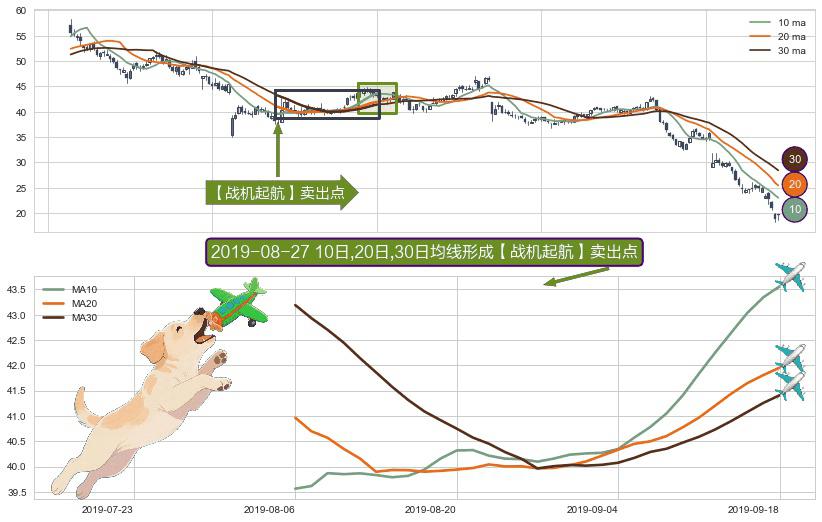 形态多维评估: ⚀ 2019-08-06日-2019-09-18日显现 10日-20日-30日均线 【战机起航】卖出点 看空信号,后市看跌,卖出