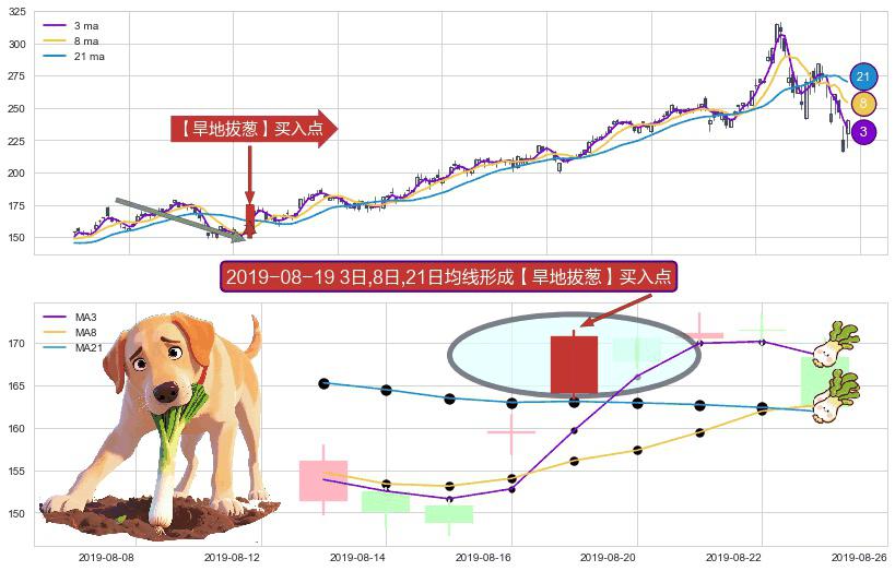 形态多维评估: ⚀ 2019-06-11日-2019-08-06日显现 3日-8日-21日均线 【烘云托月】买入点 看多信号,后市看涨,买入