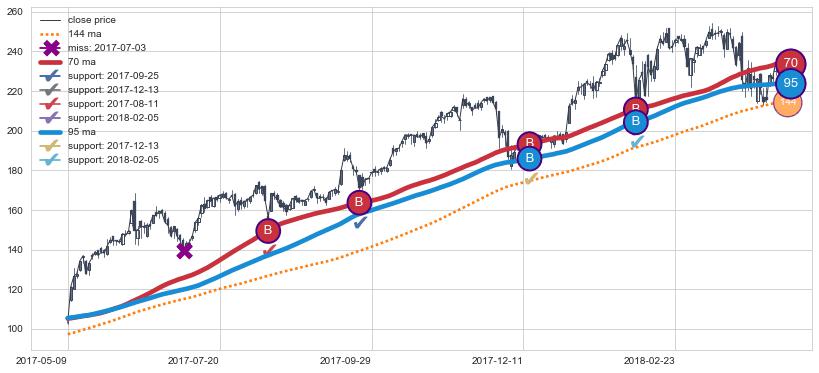 上涨趋势2017-05-09-2018-04-12,均线70, 95确认关键支撑4处