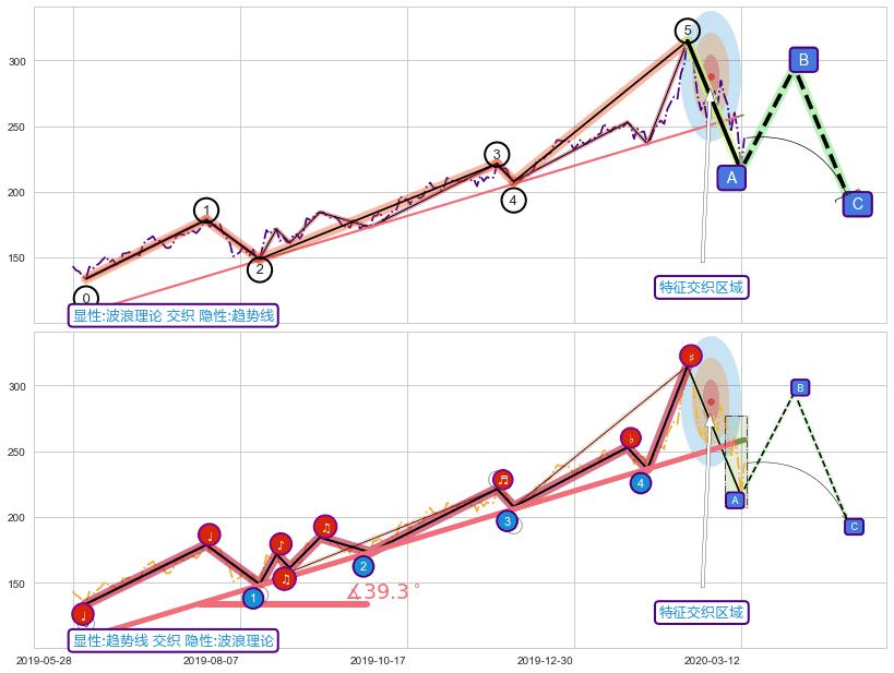 ➢ 循环浪继续向上【最低】位置(2020-12-01, 289.68),匹配聚类样本比例31.79%, 可能性概率11.86%
