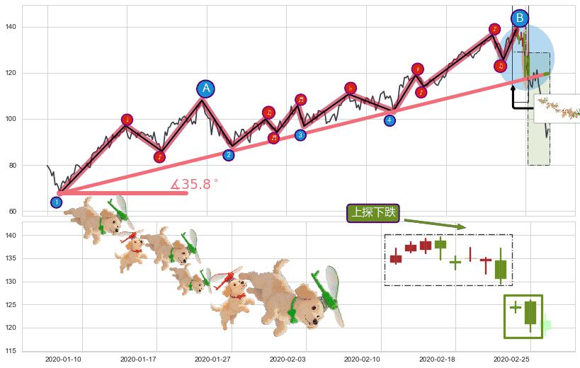 ➢ 高点影线(2020-02-25: 125.90 )→回踩→第二根k线高点(2020-02-24: 125.58 )