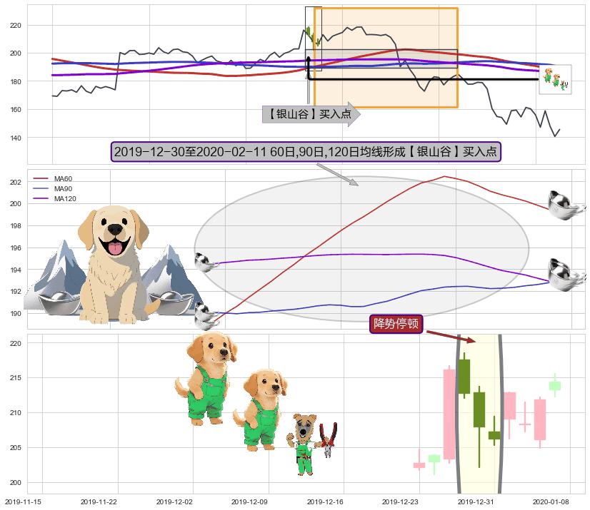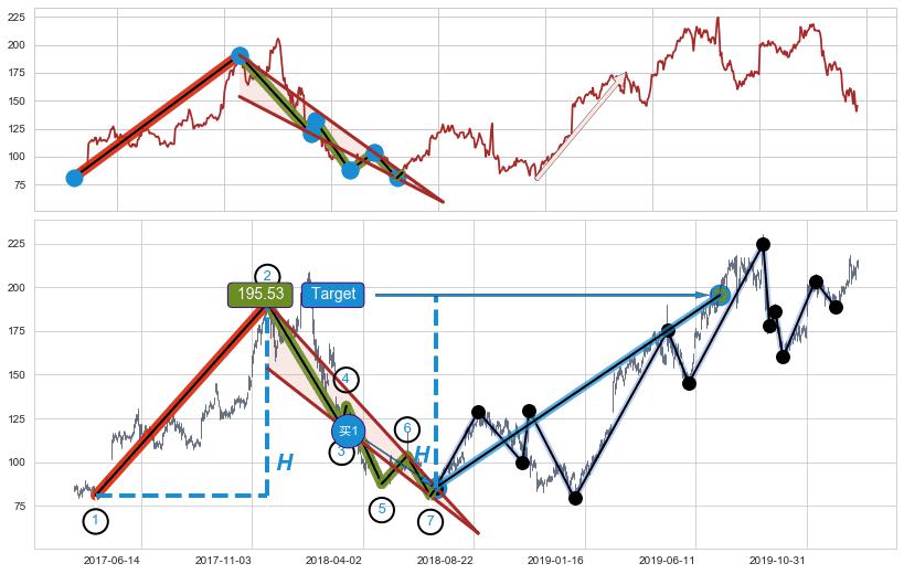 ➣ 收盘价(2020-02-14: 177.69 )→回踩→第一根k线高点(2020-02-10: 181.00 )