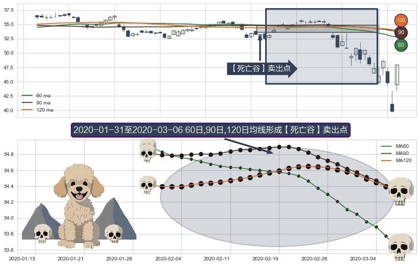 ⚀ 2020-02-03-日至2020-03-06-日显现 60日-90日-120日均线 【死亡谷】卖出点 看空信号,后市看跌,卖出