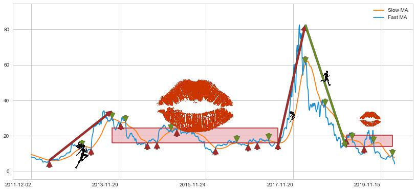 2013-10-08至2017-07-18 慢线与快线多次接触,存在上下穿越,有缠绕