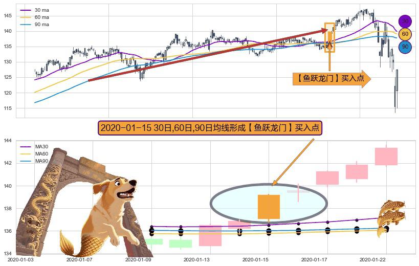⚀ 2020-01-15日显现 30日-60日-90日均线 【鱼跃龙门】买入点 看多信号,后市看涨,买入