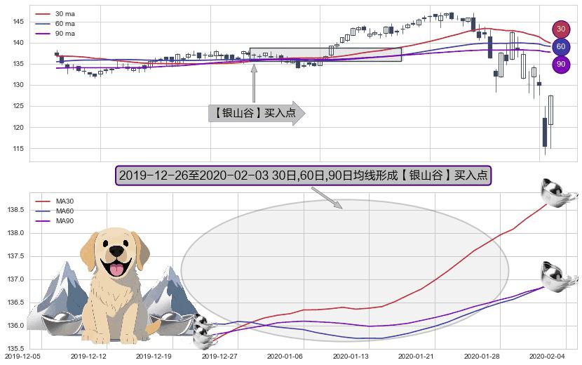 ⚀ 2019-12-27-日至2020-02-03-日显现 30日-60日-90日均线 【银山谷】买入点 看多信号,后市看涨,买入