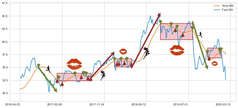 2018-12-18至2019-07-29 慢线与快线多次接触,存在上下穿越,有缠绕