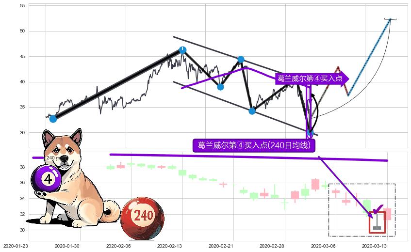 ➣ 收盘价(2020-02-04: 37.69 )→回踩→第一根k线低点(2020-01-29: 37.55 )