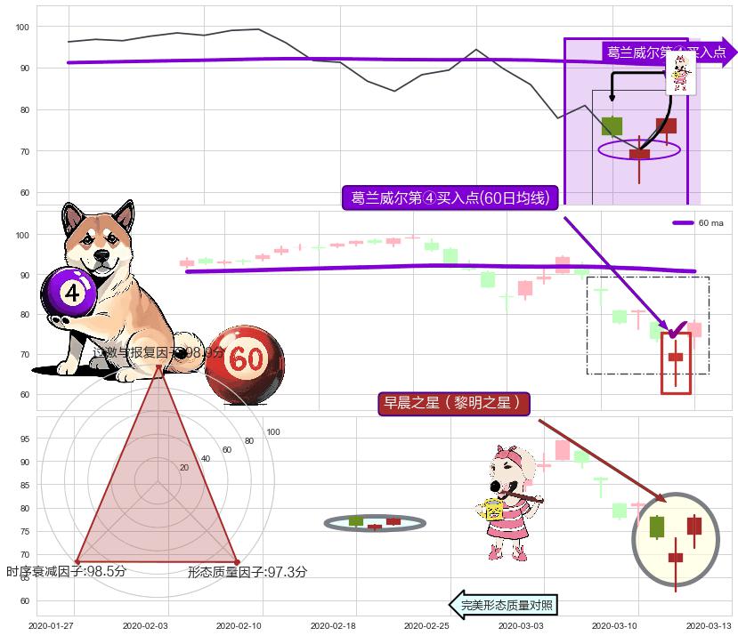 | 2 🅚:锤头线(锤子线) ➕ 🎢:葛兰威尔第④买入点买入点信号形成后,猜想后续走势持续反弹上升(均值回复) ☞ 看多信号 ⇥ 【均线】交织【🅚线】⇥ 综合量化分数: 51 | > |