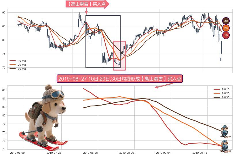形态多维评估: ⚀ 2019-07-31日-2019-09-24日显现 10日-20日-30日均线 【高山滑雪】买入点 看多信号,后市看涨,买入