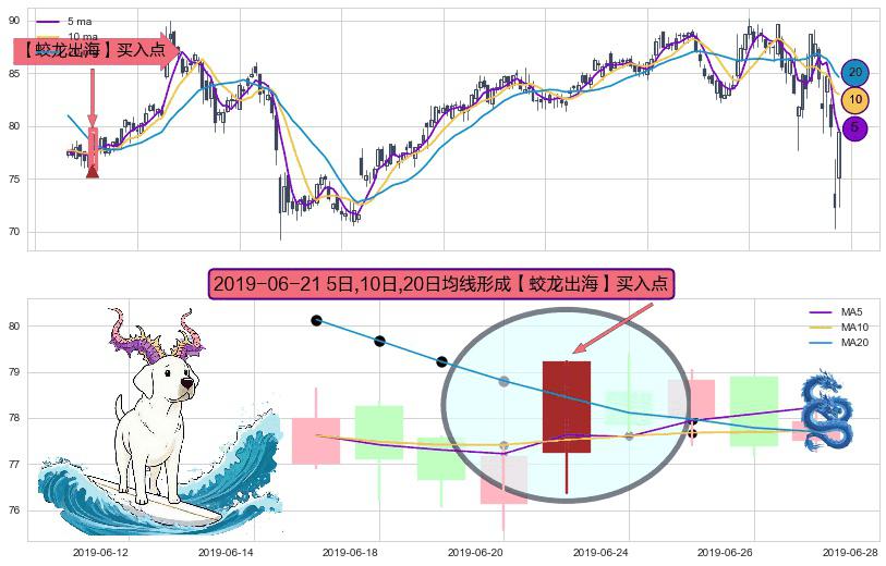 形态多维评估: ⚀ 2019-06-21日显现 5日-10日-20日均线 【蛟龙出海】买入点 看多信号,后市看涨,买入