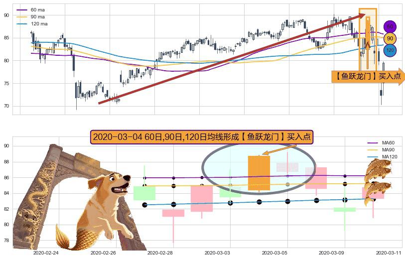 形态多维评估: ⚀ 2020-03-04日显现 60日-90日-120日均线 【鱼跃龙门】买入点 看多信号,后市看涨,买入