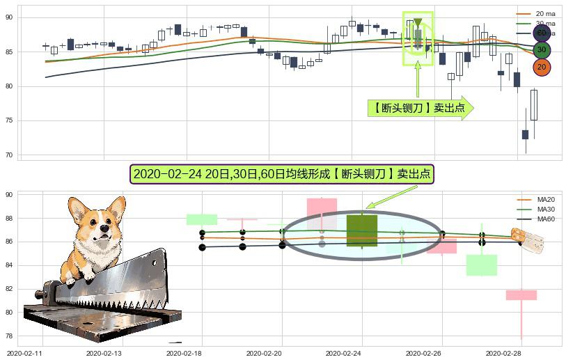 形态多维评估: ⚀ 2020-02-24日显现 20日-30日-60日均线 【断头铡刀】卖出点 看空信号,后市看跌,卖出