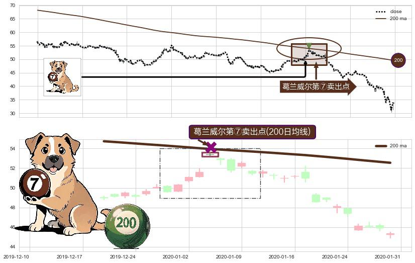 形态多维评估: ⚀ 2020-01-06-日显现 葛兰威尔均线 200日均线 第⑦卖出点 下降趋势的中继信号,后市看跌,卖出信号