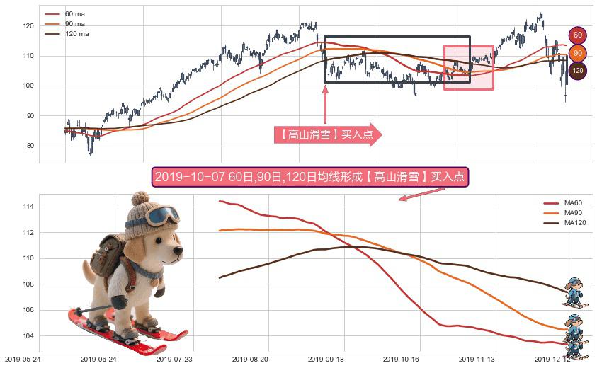 形态多维评估: ⚀ 2019-08-01日-2019-12-11日显现 60日-90日-120日均线 【高山滑雪】买入点 看多信号,后市看涨,买入