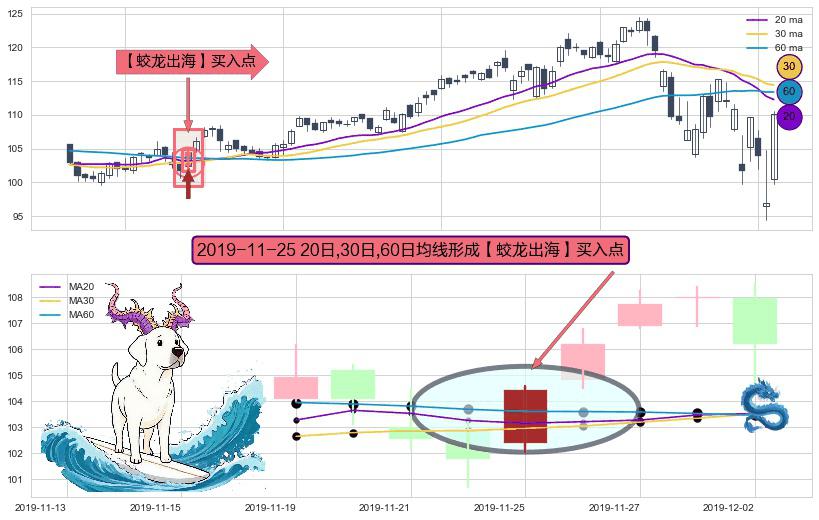形态多维评估: ⚀ 2019-11-25日显现 20日-30日-60日均线 【蛟龙出海】买入点 看多信号,后市看涨,买入